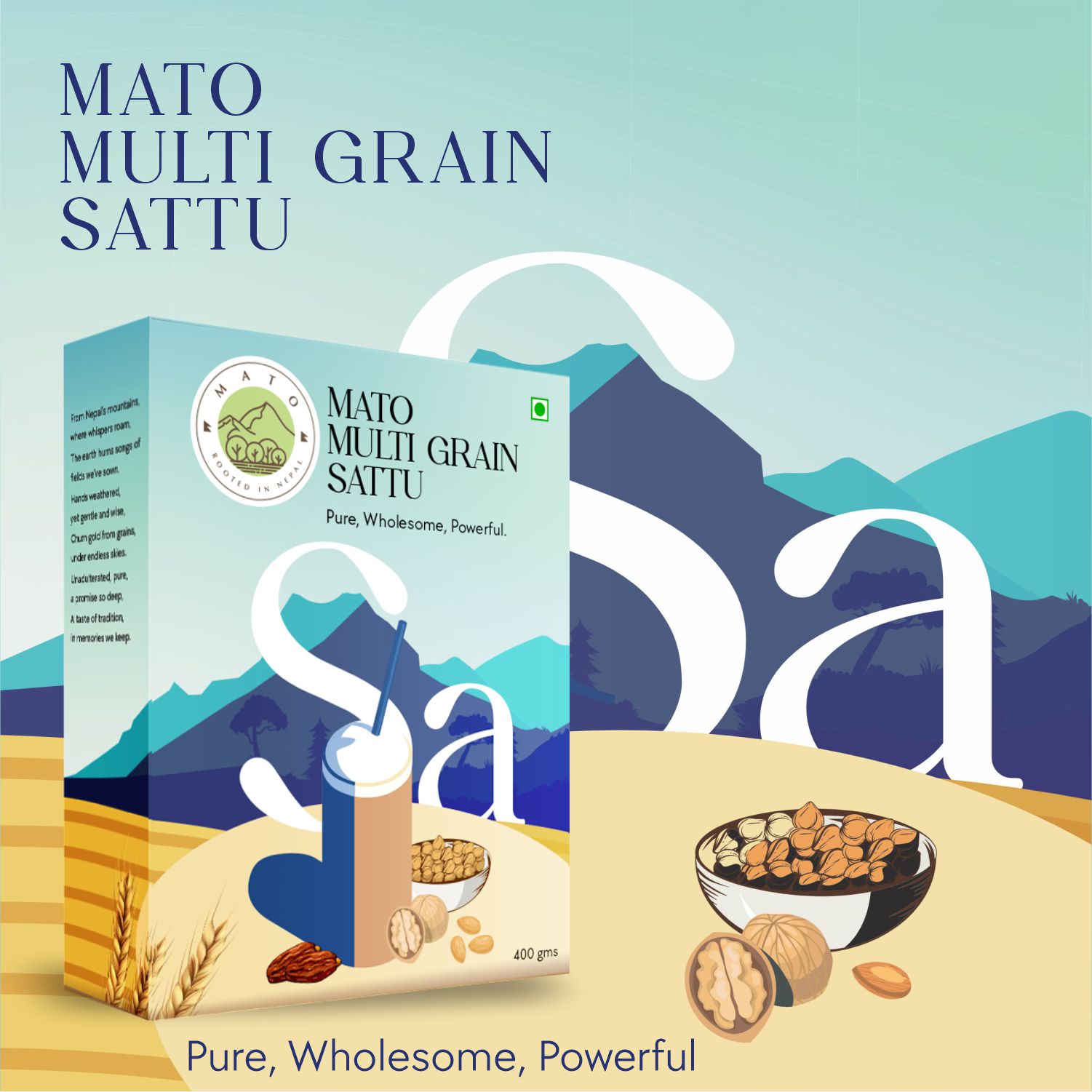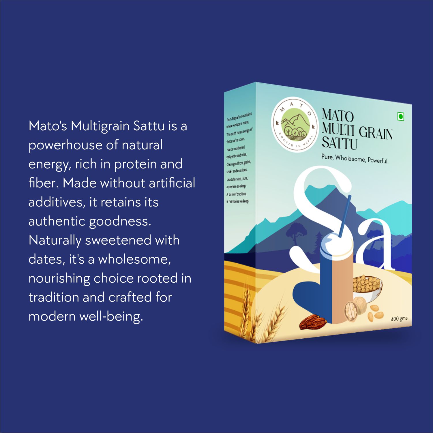 Mato’s Multigrain Sattu is a powerhouse of natural energy, rich in protein and fiber. Made without artificial additives, it retains its authentic goodness. Naturally sweetened with dates, its a wholesome, nourishing choice rooted in tradition and crafted for modern well-being.